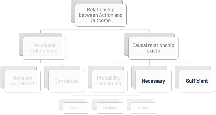 - Strong causal connections are ‘Sufficient’ or ‘Necessary’ for the outcome