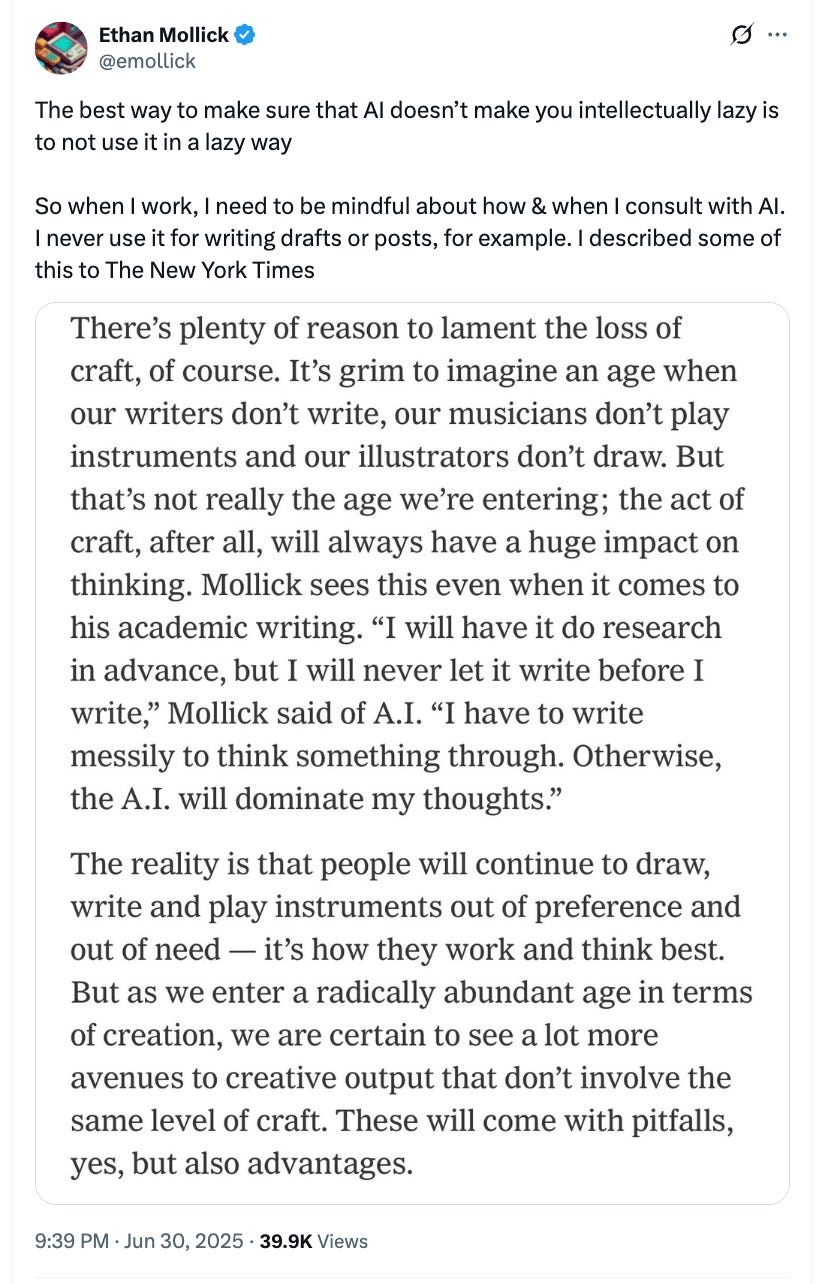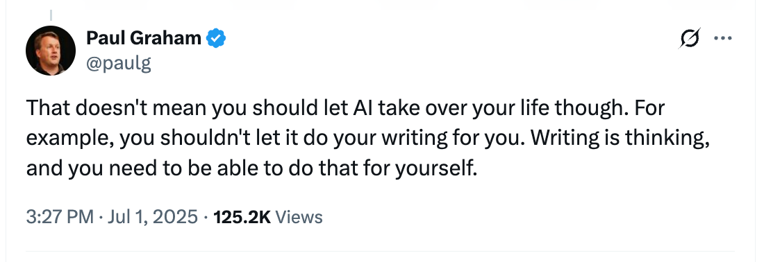 And the AI-God himself agrees – “I never use it for writing drafts or posts”.