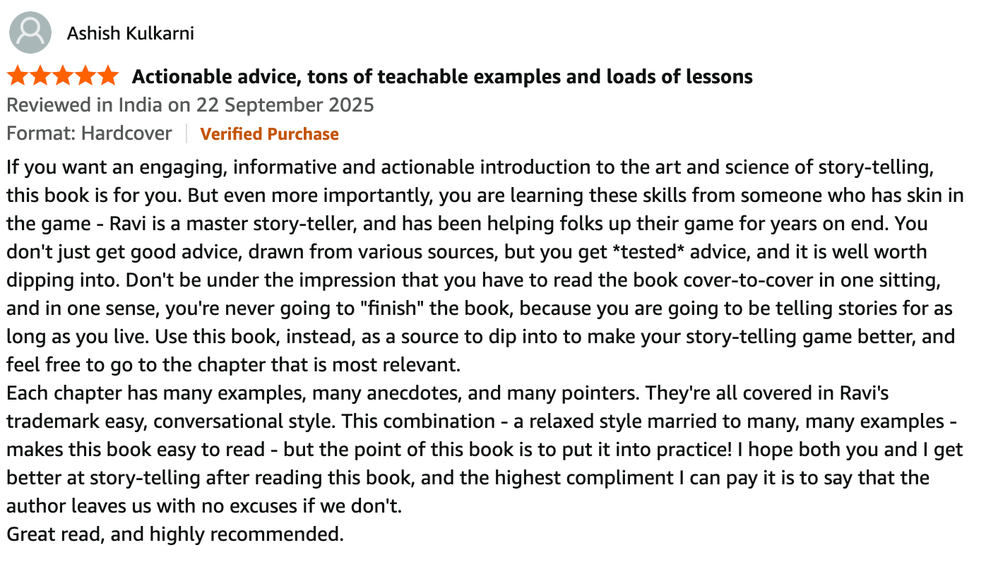Also, loved this Amazon review by newsletter reader and good friend, the economist, Ashish Kulkarni: