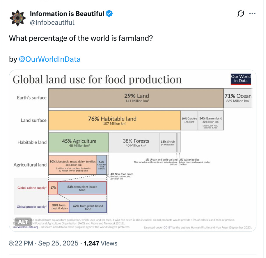 Fascinating chart. Can find so many insights in it. My favourite – look at the share taken up by urban and built up land.