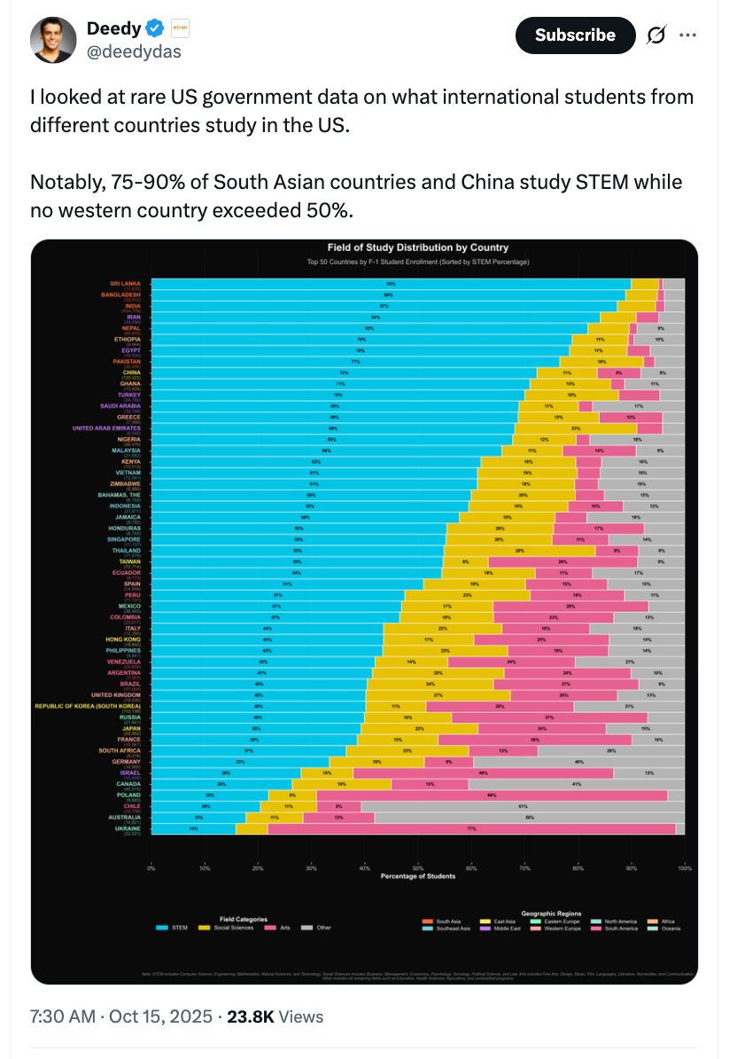 Poorer countries clearly see STEM as the main way out to prosperity, while richer countries can let their kids afford to take risks with the humanities?
