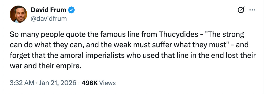 This aphorism of Thucydides is presented as inevitable — as the natural logic of international relations reasserting itself. And faced with this logic, there is a strong tendency for countries to go along to get along. To accommodate. To avoid trouble. To hope that compliance will buy safety.