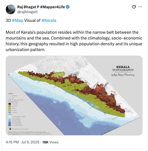 Beautiful 3D relief map of Kerala. Check out the Palakkad gap.